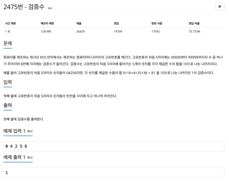 컴퓨터를 제조하는 회사인 KOI 전자에서는 제조하는 컴퓨터마다 6자리의 고유번호를 매긴다. 고유번호의 처음 5자리에는 00000부터 99999까지의 수 중 하나가 주어지며 6번째 자리에는 검증수가 들