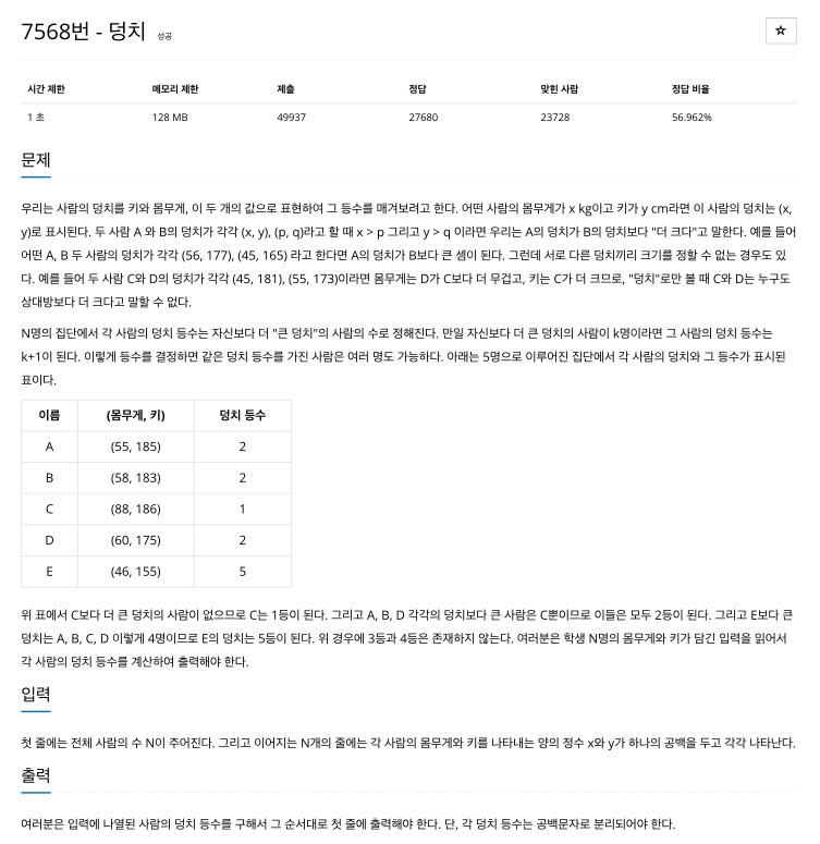 "각 사람의 덩치 등수는 자신보다 더 "큰 덩치"의 사람의 수로 정해진다."