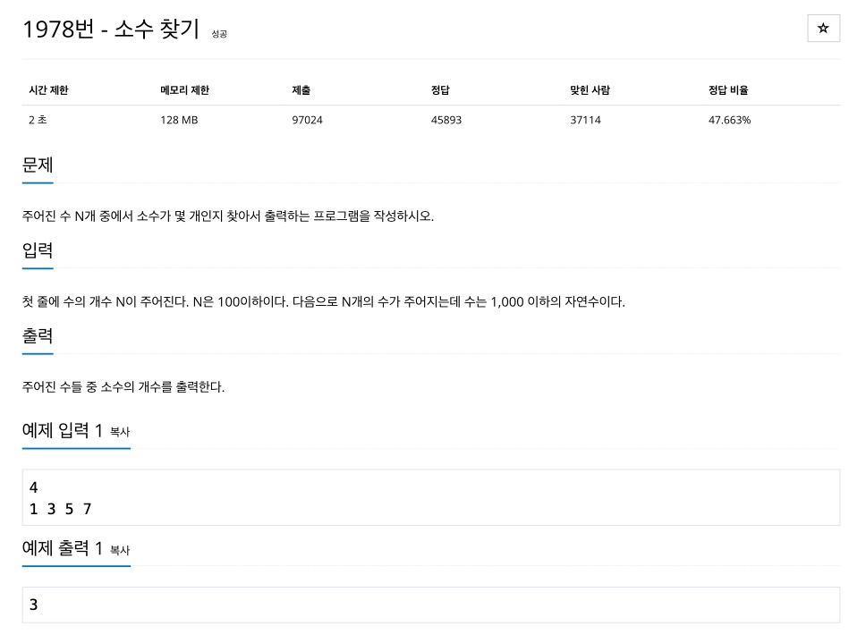 이때, 1은 소수가 될 수 없음으로 1을 제외해주는 걸 잊지 말아야 한다.