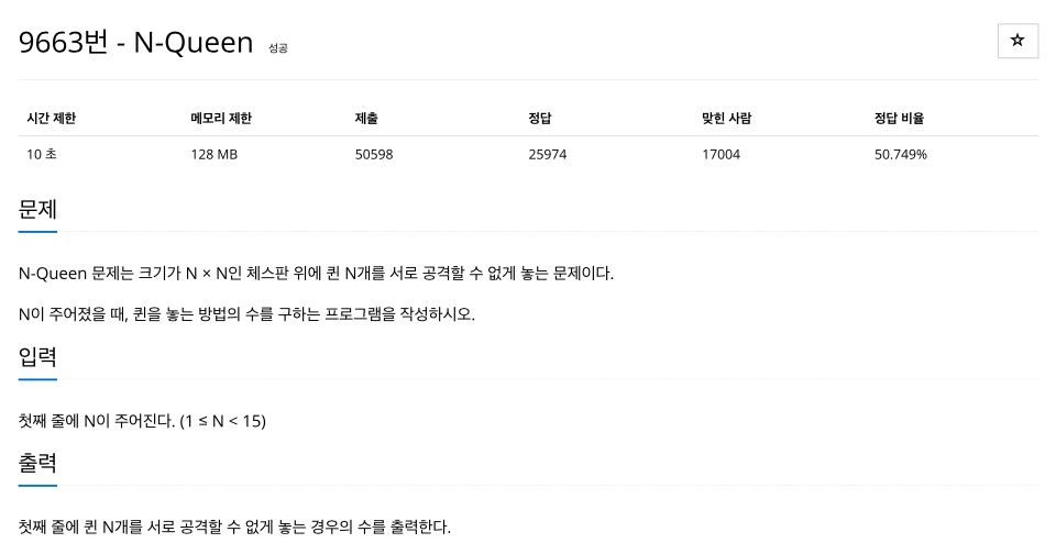 N-Queen 문제는 크기가 N × N인 체스판 위에 퀸 N개를 서로 공격할 수 없게 놓는 문제이다. N이 주어졌을 때, 퀸을 놓는 방법의 수를 구하는 프로그램을 작성하시오.