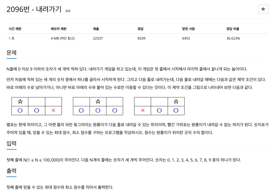 [Java]백준 BaekJoon.AC 2096 : 내려가기 (다이나믹 프로그래밍)