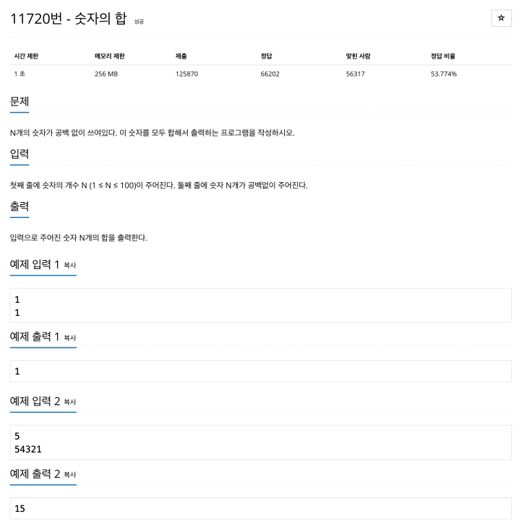 [Python]백준 BaekJoon.AC 11720 : 숫자의 합(for문)