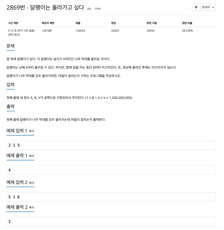 특별히 어려운 부분은 없고, 달팽이 문제의 함정만 잘 꿰뚫는다면 쉽게 풀 수 있는 문제이다.